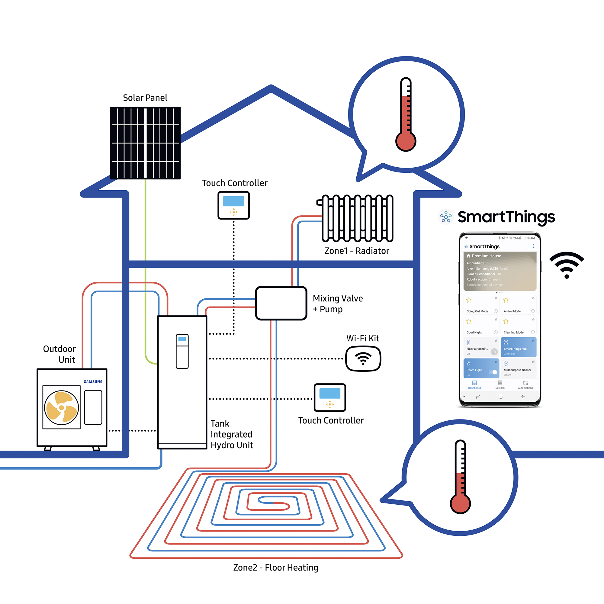 Ein weiterer großer Vorteil ist das der Energiefluss ganz einfach umgekehrt werden kann. So wird aus der Heizung für den Winter eine Kühlung für den Sommer.